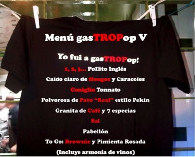 Siendo fieles a las tendencias con las que GasTROPop se inició en noviembre del año pasado, este nuevo evento se basa con su acomodado “twist” de cocina global e ingredientes locales de gran calidad, para ofrecer a través de presentaciones inusuales un distinguido menú que tendrá como entrada un Caldo claro de Hongos y Caracoles, seguido de un suculento Coniglio Tonnato, Polvorosas de Pato “Real” estilo Pekín, Granita de Café y 7 especias, Sal y un Pabellón que promete generar grades sensaciones.
