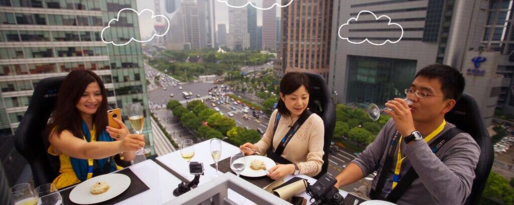 ¿Se imagina cenar suspendido a 50 metros de altura? Mejor aún, ¿cenar sobre el Grand Canyon o las pirámides de Teotihuacán en México? Esto es lo que ofrece el restaurante flotante belga Dinner in the Sky en más de 40 países. En una mesa 22 comensales, sujetados por cinturones de seguridad, son suspendidos por una grúa, literalmente, para comer en el cielo. Los más osados pueden girar sus sillas 180°, mientras disfrutan de un exquisito banquete preparado por los mejores chefs de la ciudad en la que están. Por ejemplo, cuando Dinner in the sky estuvo en Mónaco, el encargado de la cena fue el mismísimo chef del Príncipe Alberto. Así que, si no tiene miedo a las alturas y está dispuesto a pagar hasta 200 dólares por una cena, reserve un asiento si ve este restaurante flotante en su ciudad.